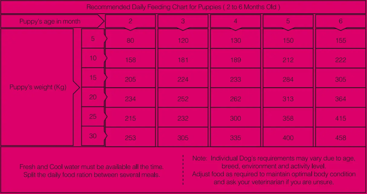 - میزان مصرف روزانه را با توجه به وزن، سطح فعالیت و شرایط محیطی توله تنظیم نمایید.